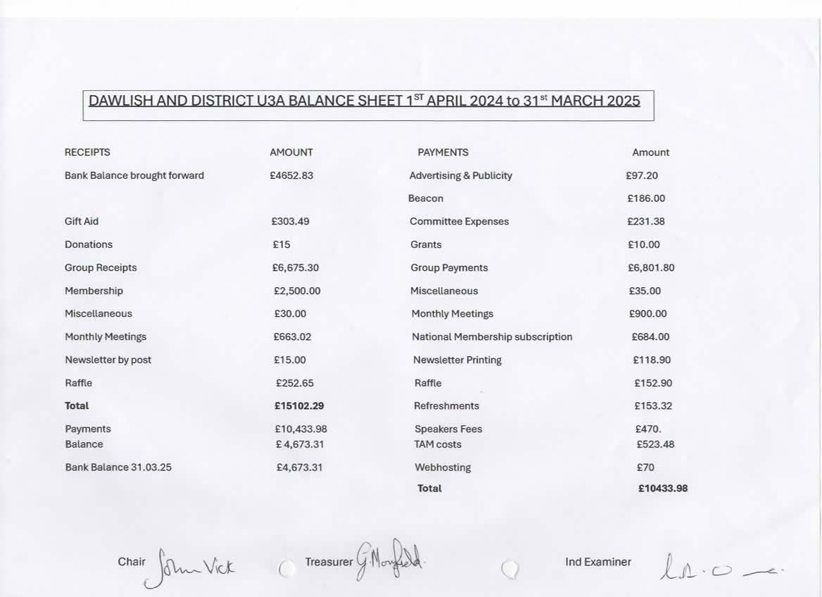 Papers for Dawlish & District u3a Annual General Meeting 15th September 2025: