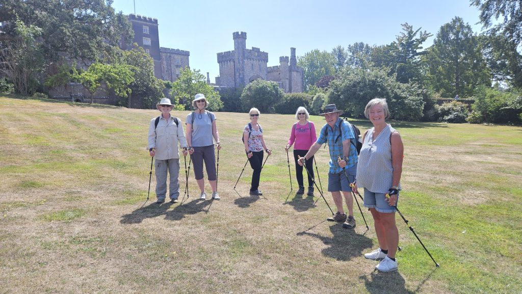 In August some of the Adventure Group went to Powderham Castle for a two hour taster session which allowed us to learn about the technique of Nordic Walking. This was originally developed in Finland in the mid twentieth century as a way for cross country skiers to train in the summer months. It has many health benefits because it gives you a full body workout, which means that you can burn around 20% more calories compared to walking without poles, release tension in your neck and shoulders, improve your posture and gait, strengthen your back and abdominal muscles and reduce the impact on your joints.