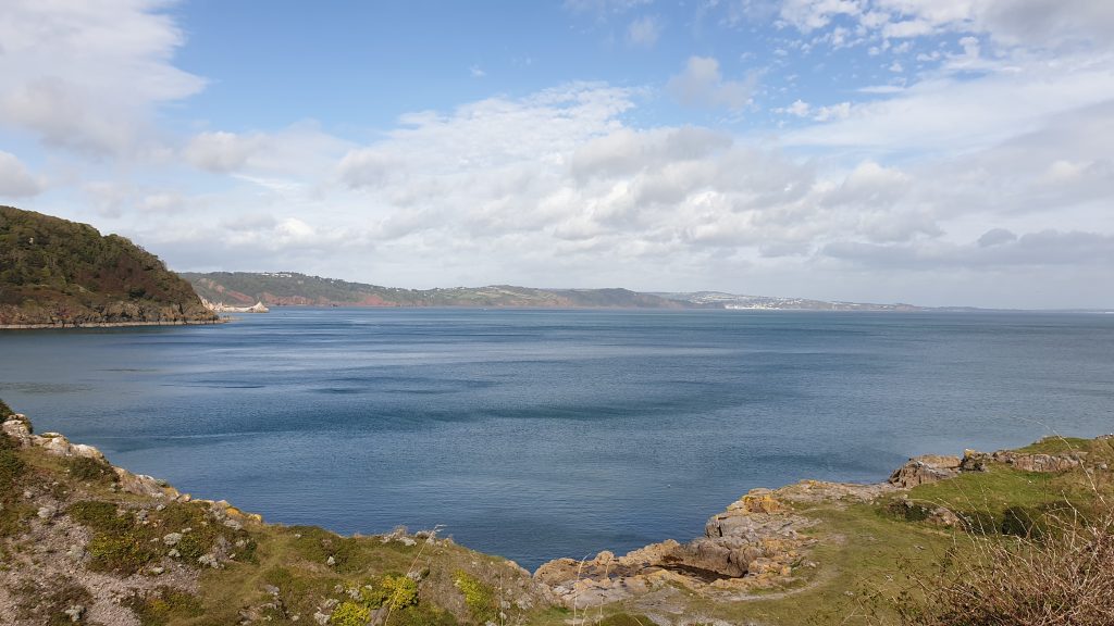 Only four of us went on our September monthly Dawlish & District u3a Strollers walk. We managed to shelter from some light drizzle whilst exploring Walls Hill at Babbacombe. Luckily, we also managed to shelter at the cafe by the Cliff Railway later during a torrential downpour. From Walls Hill we enjoyed beautiful coastal views plus we saw lots of sloes on the blackthorn and some interesting blue flowers amongst the grass – possibly Devil’s Bit Scabious?